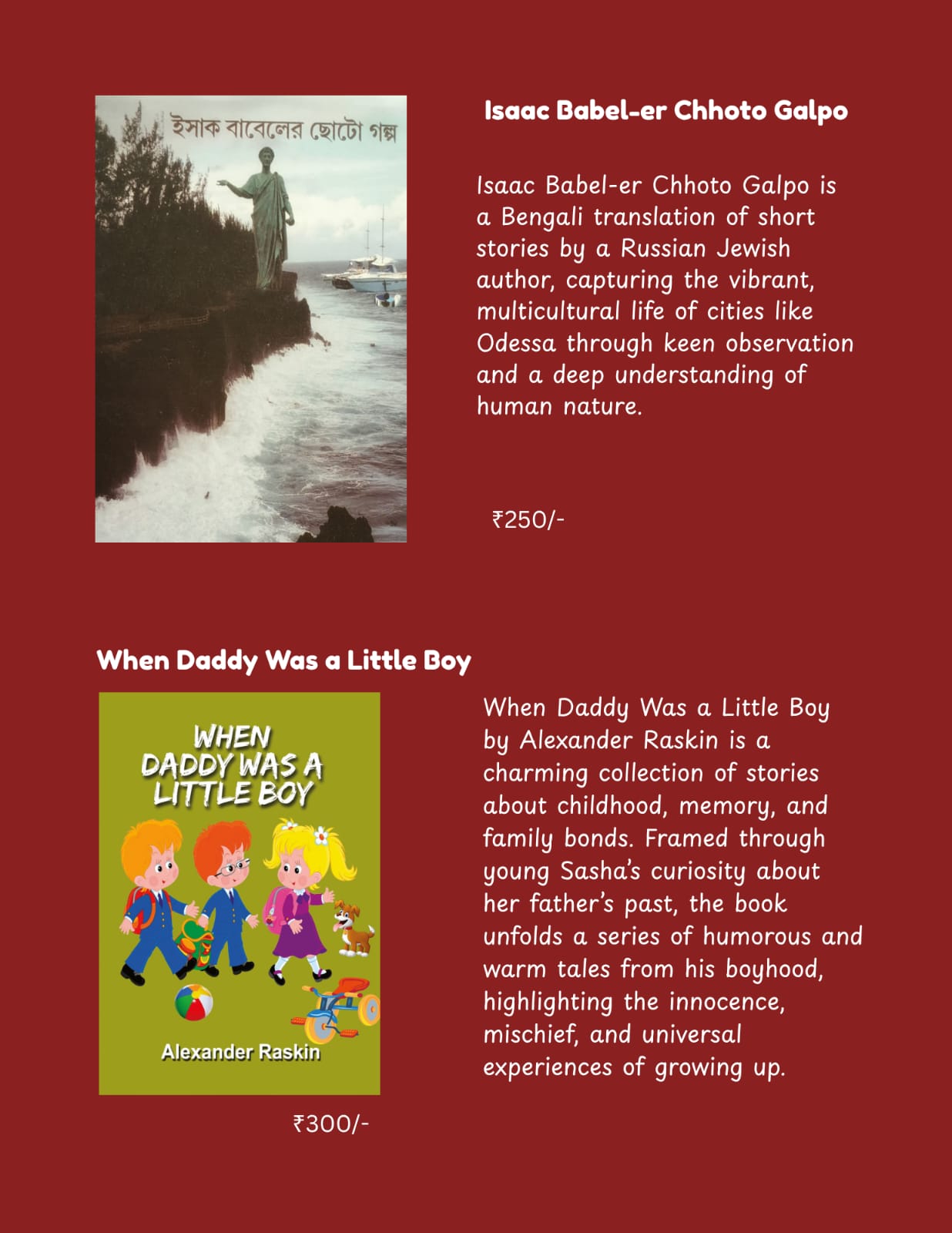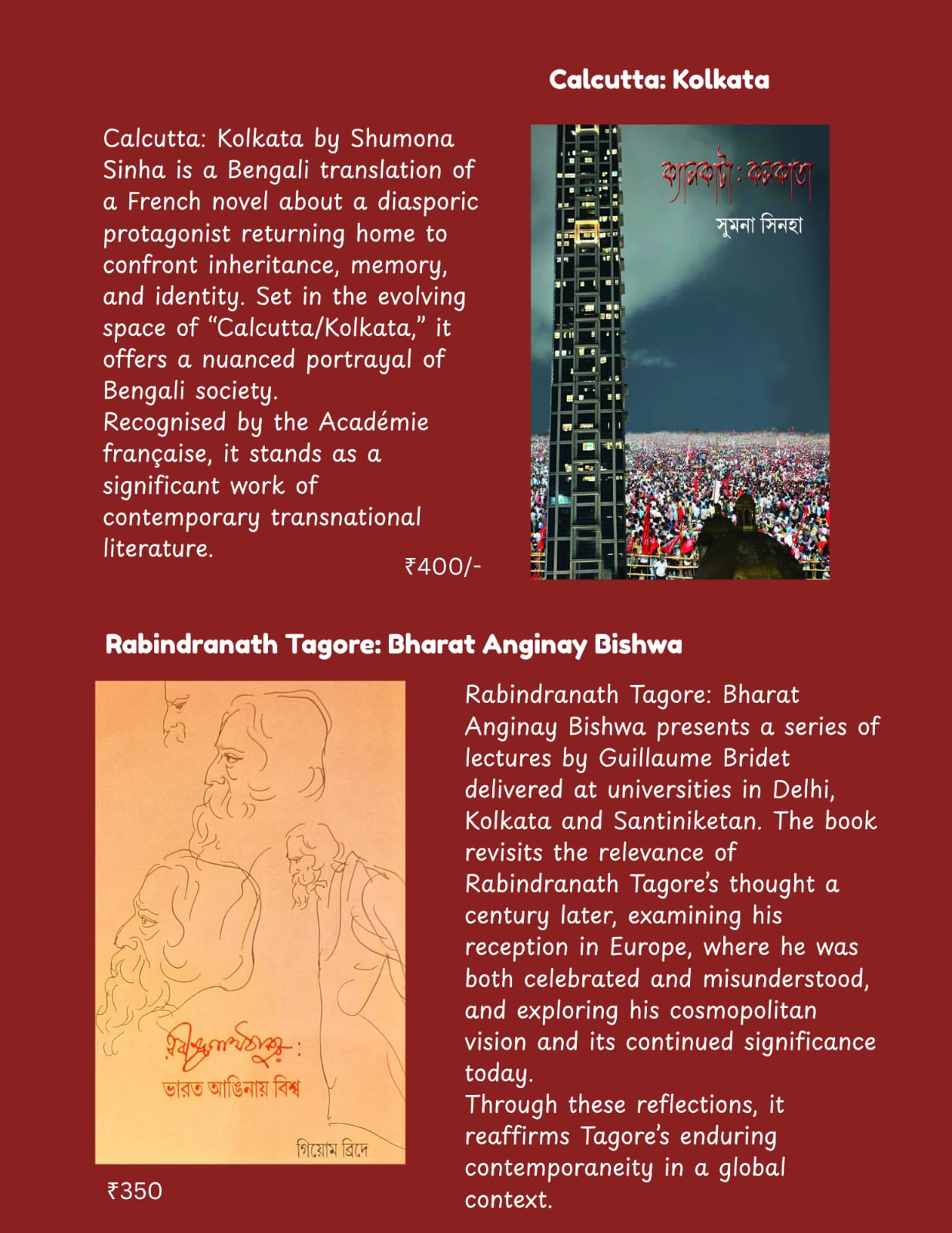 Welcome to Bingsha Shatabdi, a cosy bookstore and café located in the heart of Kolkata's vibrant Park Street. We offer a thoughtfully curated collection of books, including translations of French, German, and Dutch literature, alongside an extensive range of children’s books. Whether you're a passionate reader or a casual visitor, our warm, inviting atmosphere is the perfect place to unwind and explore. Enjoy a cup of coffee while you browse through our diverse selection, which caters to readers of all tastes and ages. At Bingsha Shatabdi, we are more than just a bookstore – we are a space where literature, culture, and conversation come together, creating a unique experience for all who visit.